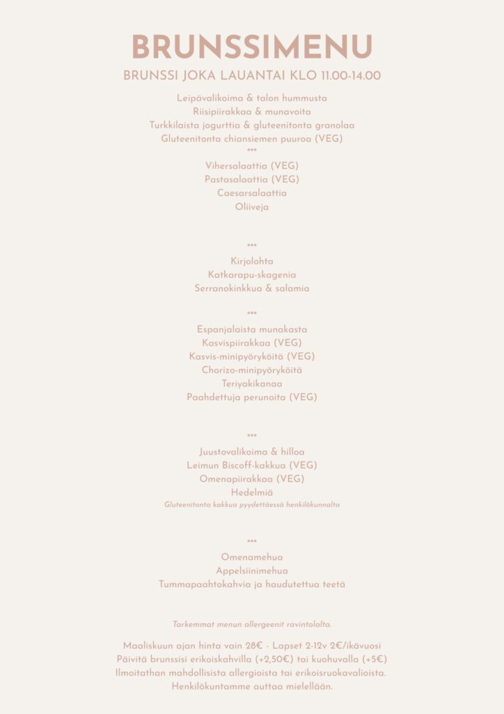 Brunssi lauantaisin klo 11.00-14.00